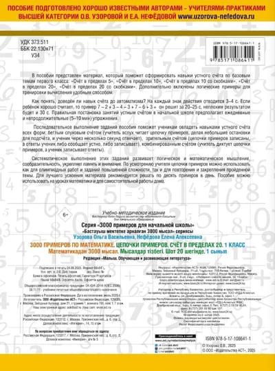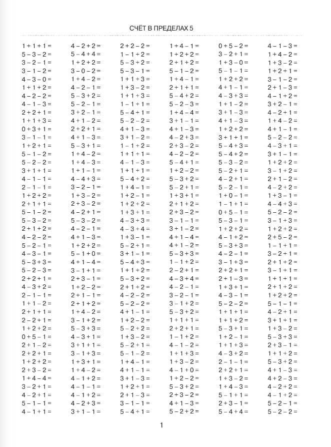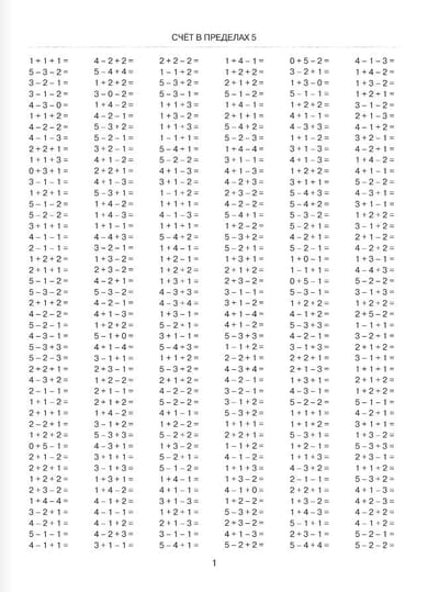 В пособии представлен материал, который поможет сформировать навыки устного счета по базовым темам первого класса: «Счет в пределах 5», «Счет в пределах 10», «Счет в пределах 10 со скобками», «Счет в пределах 20», «Счет в пределах 20 со скобками», а также логические примеры для тренировки вычисления удобным способом.