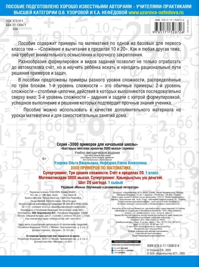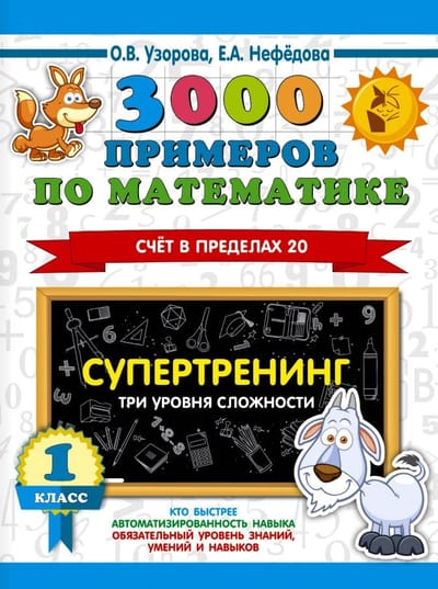 3000 примеров по математике. Супертренинг. Три уровня сложности. Счет в пределах 20. 1 класс