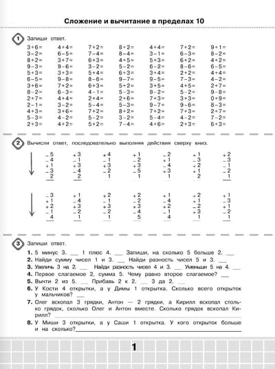 В пособии предложены примеры разного уровня сложности, распределенные по трём блокам. 1-й уровень сложности – это обычные примеры; 2-й уровень сложности – столбики-цепочки, действие в которых выполняются последовательно сверху вниз; 3-й уровень сложности – задания и задачи с хитрой формулировкой, успешное выполнение и решение которых подтвердит прочные знания ученика.