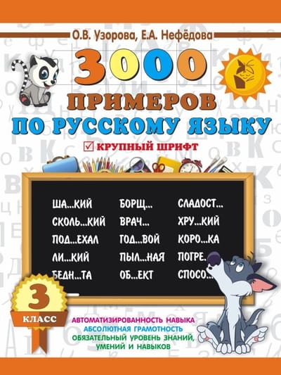 Пособие содержит 3000 новых примеров на повторение и закрепление основных правил орфографии и пунктуации. Оно охватывает всю программу 3 класса по русскому языку. Особенностью этого издания является крупный шрифт. Материал построен таким образом, что позволяет за короткое время учащимся отработать все орфограммы и пунктограммы, а учителю проверить их знания. Пособие может быть использовано как на уроках русского языка, так и для работы дома.