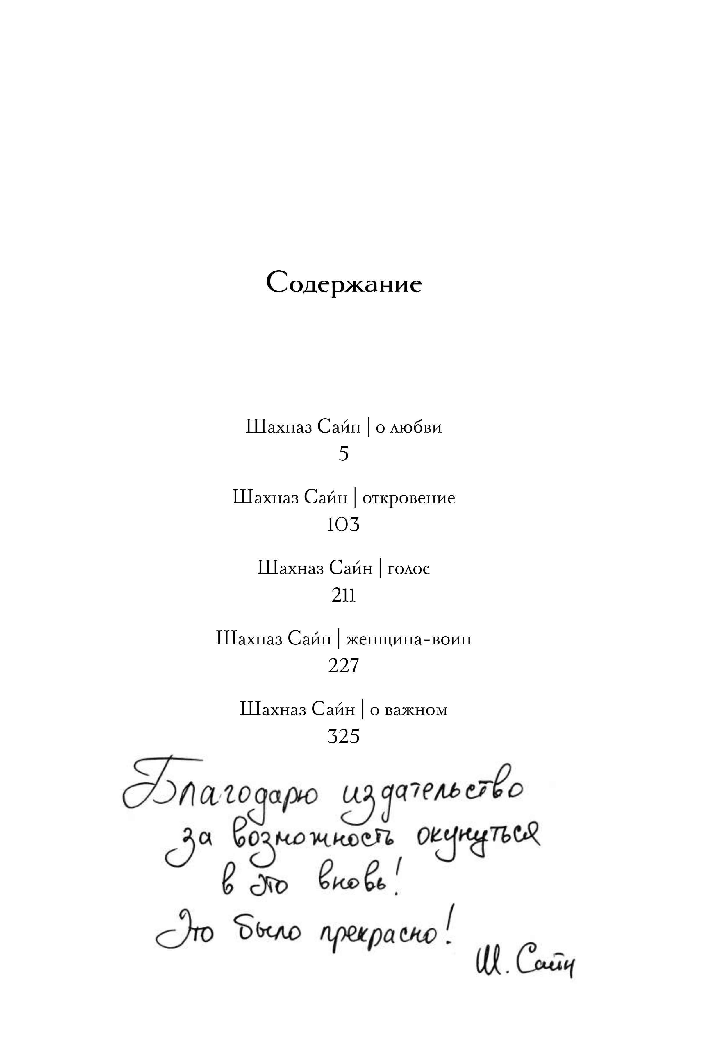 Книга Шахназ состоит из 365 стихов и цитат, объединенных в пять глав: