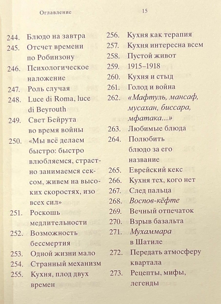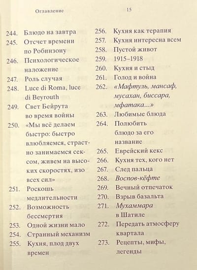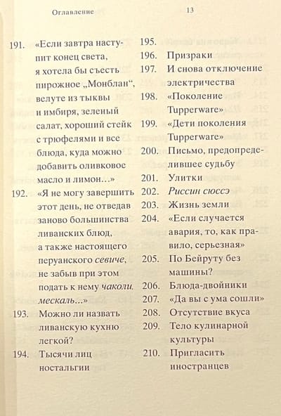 Автор говорит о кухне и еде как средствах наведения мостов между людьми. Вместе с ароматами ливанских блюд весь текст пронизывает предчувствие грядущей катастрофы, которая вскоре обрушилась на Бейрут.