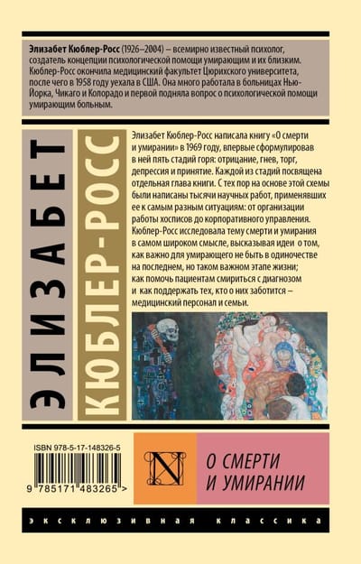 Элизабет Кюблер-Росс написала книгу «О смерти и умирании» в 1969 году, впервые сформулировав в ней пять стадий горя: отрицание, гнев, торг, депрессия и принятие. Каждой из стадий посвящена отдельная глава книги. С тех пор на основе этой схемы были написаны тысячи научных работ, применявших ее к самым разным ситуациям: от организации работы хосписов до корпоративного управления. Кюблер-Росс исследовала тему смерти и умирания в самом широком смысле, высказывая идеи о том, как важно для умирающего не быть в одиночестве на последнем, но таком важном этапе жизни; как помочь пациентам смириться с диагнозом и как поддержать тех, кто о них заботится – медицинский персонал и семьи.