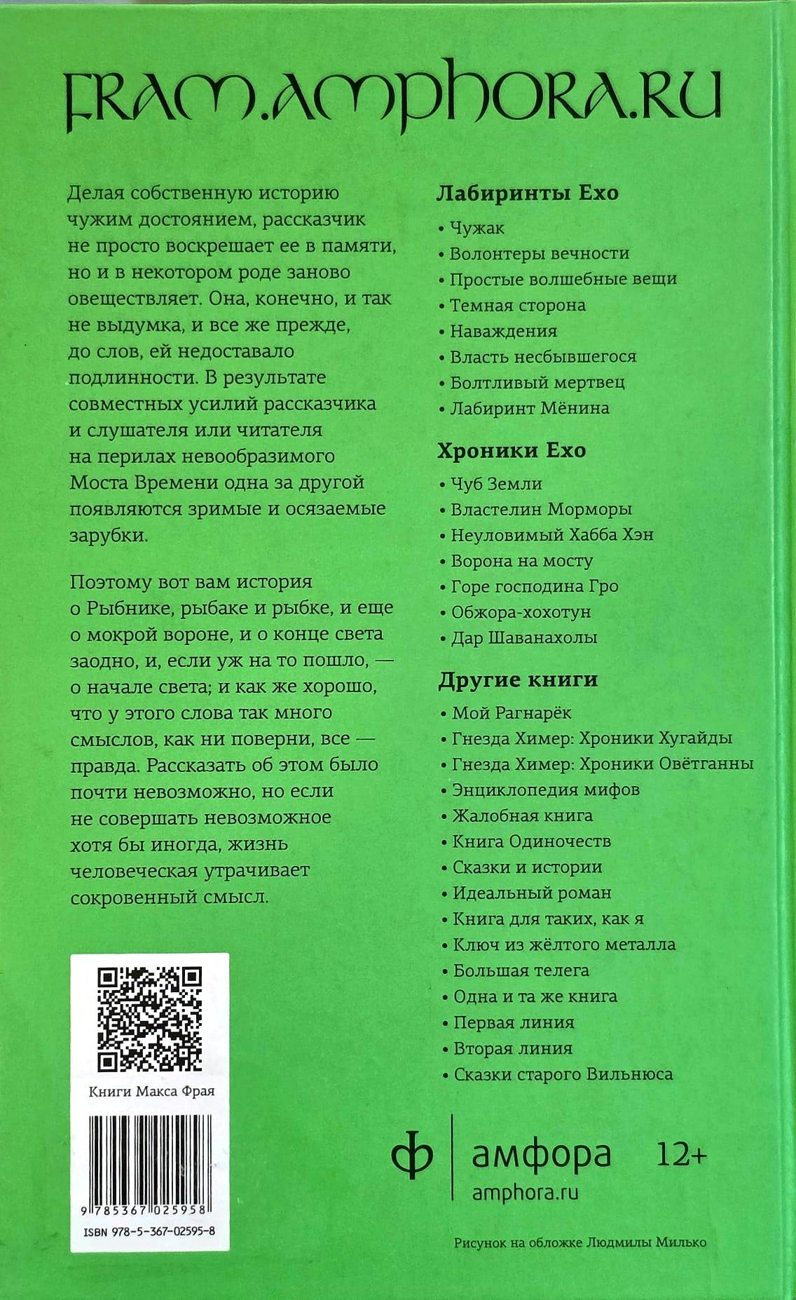 Вот вам история о Рыбнике, рыбаке и рыбке, и еще о мокрой вороне, и о конце света заодно, и, если уж на то пошло, — о начале света; и как же хорошо, что у этого слова так много смыслов, как ни поверни, все — правда. Рассказать об этом было почти невозможно, но если не совершать невозможное хотя бы иногда, жизнь человеческая утрачивает сокровенный смысл.