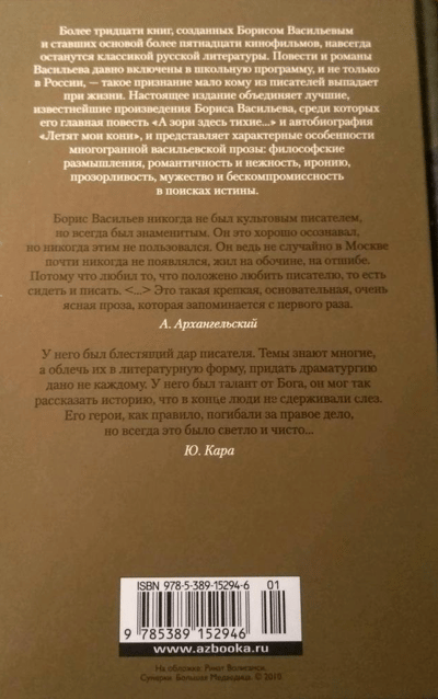 Борис Васильев был в истинном и самом простом смысле этого слова народный писатель. В Солнечногорск, где он жил уединенно в последние годы, к нему ездили почти как к Толстому в Ясную Поляну. И сегодня Васильева читают, Васильева любят, его слову доверяют. Далеко не всем авторам ХХI века дано создать нечто подобное по силе, искренности, проникновенности, как книги Бориса Васильева о военных и предвоенных годах, об этических вопросах любви, чувства долга и естественном ходе бытия. В настоящее издание вошли самые известные произведения Бориса Васильева.