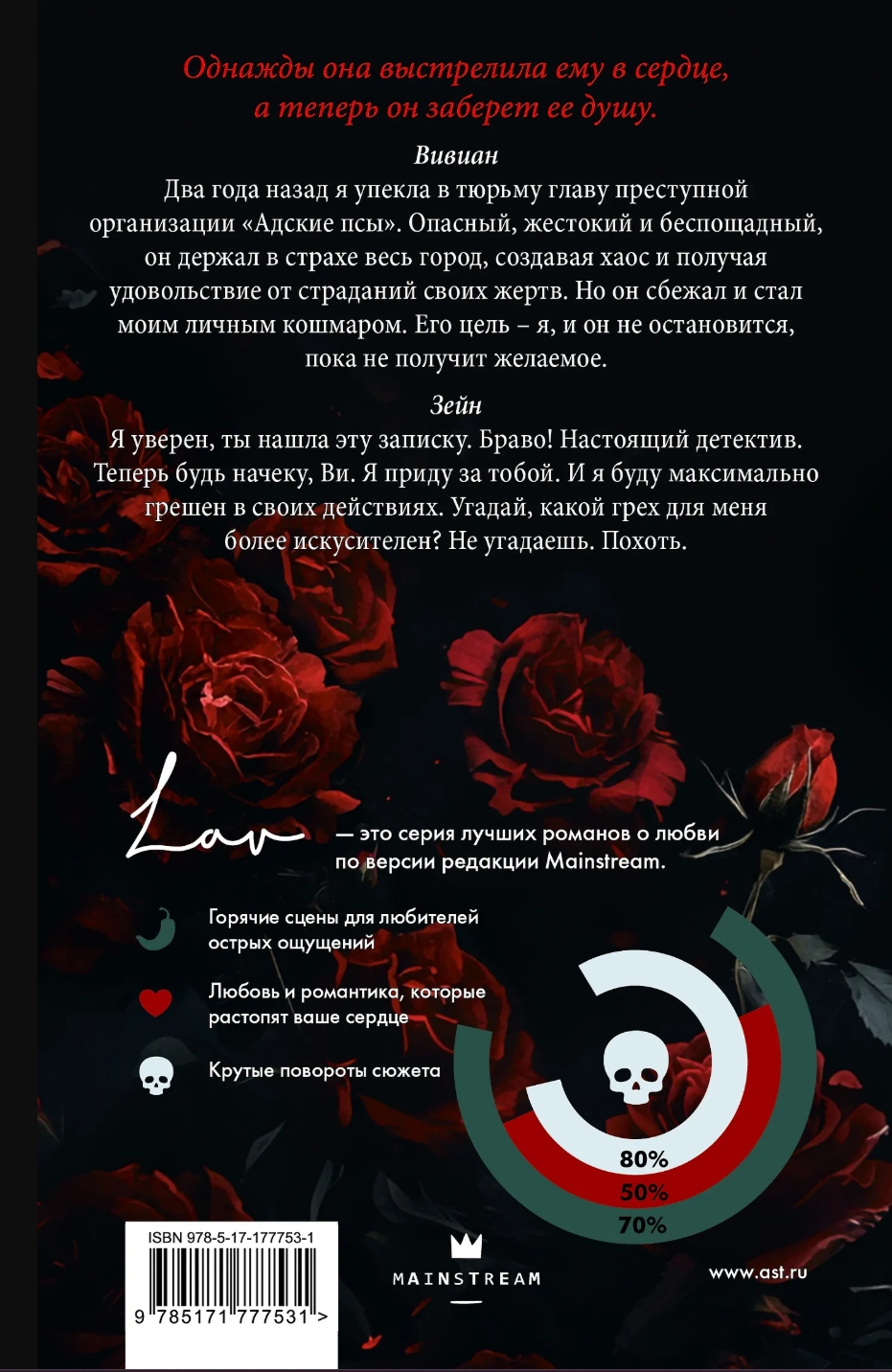 Два года назад я упекла в тюрьму главу преступной организации «Адские псы». Опасный, жестокий и беспощадный, он держал в страхе весь город, создавая хаос и получая удовольствие от страданий своих жертв. Но он сбежал и стал моим личным кошмаром. Его цель – я, и он не остановится, пока не получит желаемое.