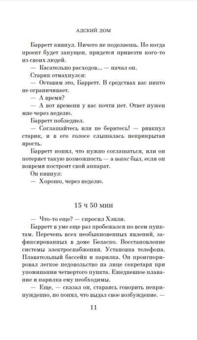 Умирающий миллионер Дойч, озабоченный вопросом «Возможна ли жизнь после смерти?», нанимает группу ученых, специалистов по паранормальным явлениям, чтобы те исследовали такую возможность. Сроку на все неделя. Место проведения исследований — так называемый Адский дом, здание, знаменитое тем, что здесь в конце двадцатых годов нашли массу трупов гостей, приглашенных сюда хозяином, а тело владельца дома, маньяка и некроманта Эмерика Беласко, так и не обнаружили. С тех пор, по мнению многих, в доме обитают привидения… Роман «Адский дом» наравне с такими мировыми бестселлерами Ричарда Матесона, как «Я — легенда», «Невероятный уменьшающийся человек», и другими книгами мастера стал классикой американской литературы.