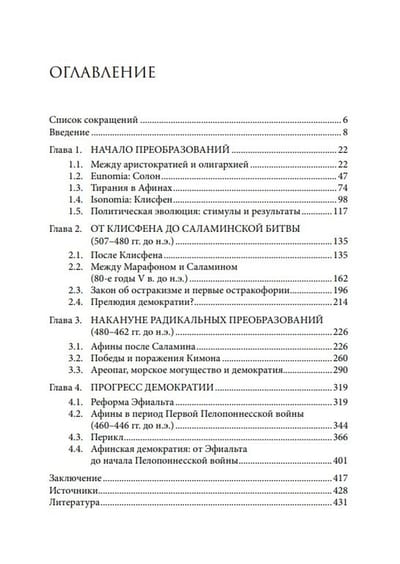 В монографии исследуется процесс становления афинской демократии на протяжении архаического и классического периодов (VIII — середина V века до н.э.). Вопросы о том, что такое афинская демократия, когда она возникла и какую роль в ее появлении сыграли те или иные социальные слои, остаются дискуссионными на протяжении длительного времени. В книге показано, что одним из значимых стимулов возникновения демократии становится борьба за власть и влияние внутри слоя аристократии, к участию в которой нередко привлекался и афинский демос. В процессе этой борьбы, с одной стороны, создавались равные условия для «лучших» (eunomia, isonomia), а с другой — происходило расширение политических прав простого народа. Результатом этих процессов становится государственное устройство, в котором значительную роль играют коллегиальные политические институты, прежде всего народное собрание, избиравшее должностных лиц, и гелиэя (народный суд), осуществлявшая контроль за ежегодно избираемыми магистратами. Тем не менее афинскую демократию нельзя считать народоправством или «властью народа». Сами афиняне характеризовали ее как коллективное правление или власть «большинства» — тех, кто обладал политическими правами.Книга адресована как специалистам и исследователям, так и широкому кругу читателей, интересующихся историей Греции.