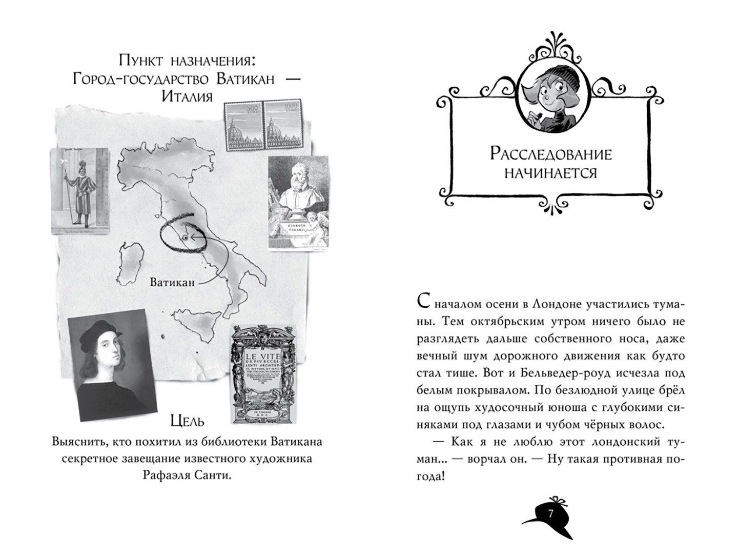 Наделённая потрясающим чутьём и феноменальной памятью, Агата Мистери мечтает стать писательницей. Но это в будущем, а пока она просто превосходная сыщица! Вместе со своим незадачливым кузеном Ларри, студентом детективной школы, она путешествует по миру, чтобы решать самые запутанные загадки. А помогают им преданный дворецкий, вредный сибирский кот и множество чудаковатых родственников. Из Секретного архива библиотеки Ватикана похищен ценнейший документ — только что обнаруженное учёными и ещё даже не расшифрованное завещание Рафаэля, великого итальянского живописца. Агата и Ларри Мистери немедленно отправляются в Италию. К счастью, в Риме живёт их дядюшка, выдающийся специалист по старинным текстам. Вместе им предстоит найти пропавшее письмо и заодно совершить сенсационное открытие...