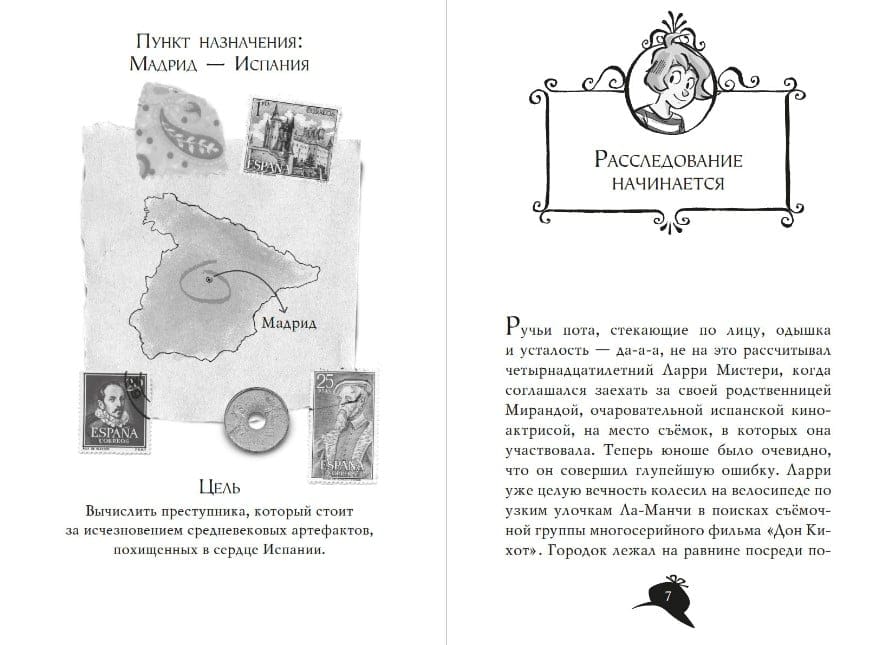 Наделённая потрясающим чутьём и феноменальной памятью, Агата Мистери мечтает стать писательницей. Но это в будущем, а пока она просто превосходная сыщица! Вместе со своим незадачливым кузеном Ларри, студентом детективной школы, она путешествует по миру, чтобы решать самые запутанные загадки. А помогают им преданный дворецкий, вредный сибирский кот и множество чудаковатых родственников. Вор-невидимка. У Ларри Мистери очередное задание! На этот раз школа сыщиков «Око Интернешнл» отправила юношу в жаркую Испанию. В нескольких городах в одно и то же время из музеев и частных коллекций пропадают средневековые реликвии. Кажется, что предметы искусства никак не связаны друг с другом… Почему же грабитель похищает именно их? И как поймать вора, единственная улика против которого, — таинственный чёрный автомобиль, исчезающий в темноте? Без поддержки своей двоюродной сестры Агаты юному детективу, конечно, не обойтись. Помочь ребятам также вызвалась талантливая актриса телесериалов знойная красотка Миранда Мистери!