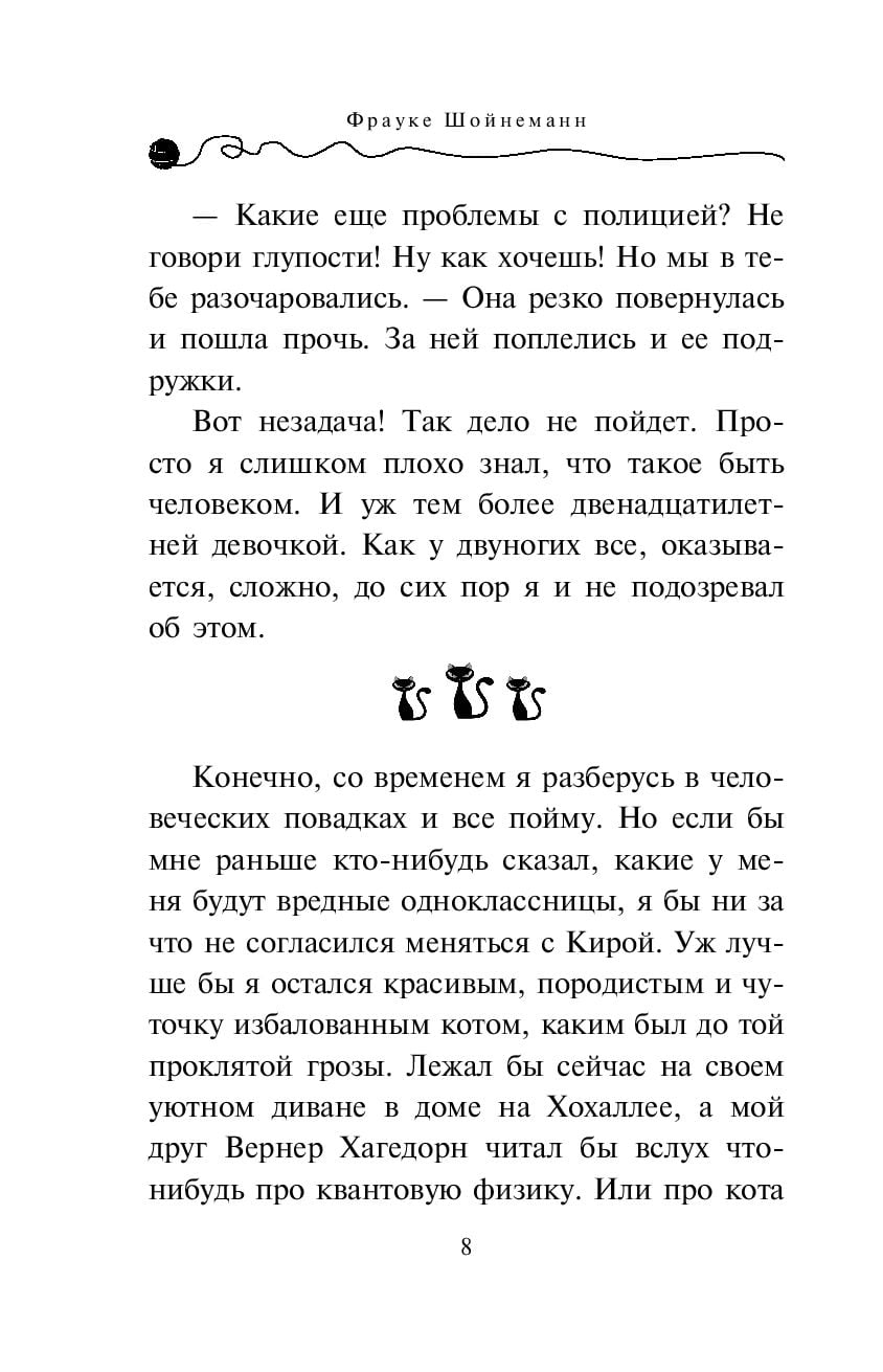 Уинстон Черчилль – истинный аристократ, короткошёрстный британец, грациозный, умный и самую малость ленивый кот, который живёт в доме профессора физики в Гамбурге. Его жизнь была спокойной и размеренной, пока он не познакомился с двенадцатилетней Кирой. Обычная прогулка обернулась для новых друзей неожиданным приключением – во время грозы они поменялись телами! Это оказалось настоящей катастрофой: ведь теперь Уинстон должен не только попасть в компанию самых крутых девчонок в Кириной школе, но и разоблачить банду контрабандистов, чтобы спасти маму девочки от несправедливых обвинений!