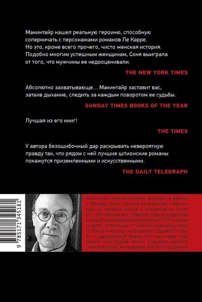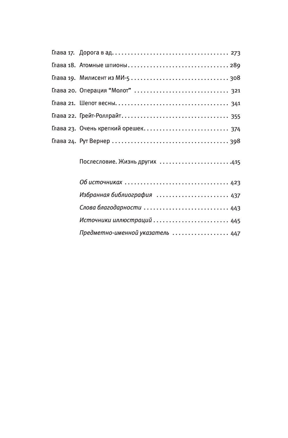 Ударив шестнадцатилетнюю Урсулу Кучински дубинкой на демонстрации, берлинский полицейский, сам того не зная, определил ее судьбу. Девушка из образованной еврейской семьи, чьи отец и брат исповедовали левые взгляды, стала верной сторонницей коммунизма и двадцать лет занималась шпионажем на Советский Союз. Агент Соня получила боевое крещение в Шанхае у Рихарда Зорге, прошла разведшколу в Москве, едва не приняла участие в покушении на Гитлера, собственноручно собирала радиопередатчики, в годы Второй мировой передавала в СССР атомные секреты, полученные от ученого-разведчика Клауса Фукса, и ни разу не провалила задания. Общительная и жизнерадостная, она влюблялась и растила детей, заботилась о родителях — и не давала неповоротливым сыщикам из Ми-5 повода заподозрить ее в двойной жизни. Судьба Урсулы Кучински-Гамбургер-Бертон — удивительный пример того, как можно сохранить верность своим взглядам, не предавая и не будучи преданной, в мире, охваченном катастрофой, где черное и белое меняются местами или сливаются воедино. Вероятно, ее секрет — в способности любить и меняться, не изменяя себе.