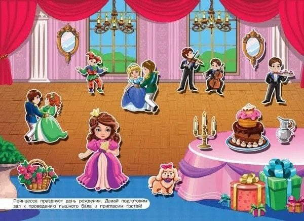 Занимательная книжка «Бал принцессы», вышедшая в серии «Играем и учимся» школы раннего развития «Айфолика», создана специально для развивающих занятий взрослых с детьми до 3 лет. Яркая и привлекательная книжка напечатана на плотной  высококачественной мелованной бумаге. На книжном развороте издания нарисованы вольеры зоопарка, а специальная вставка содержит красочные многоразовые наклейки с изображениями различных экзотических животных, которых можно увидеть в зоологическом саду. Играя с яркими наклейками, которые можно отклеивать и наклеивать несколько раз, Ваш малыш сможет развить внимание, воображение и мелкую моторику.