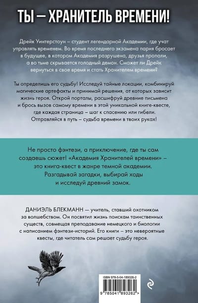 Не просто фэнтези, а приключение, где ты сам создаешь сюжет! «Академия Хранителей времени» — это книга-квест в жанре темной академии. Разгадывайте загадки, выбирайте ходы и исследуйте древний замок.