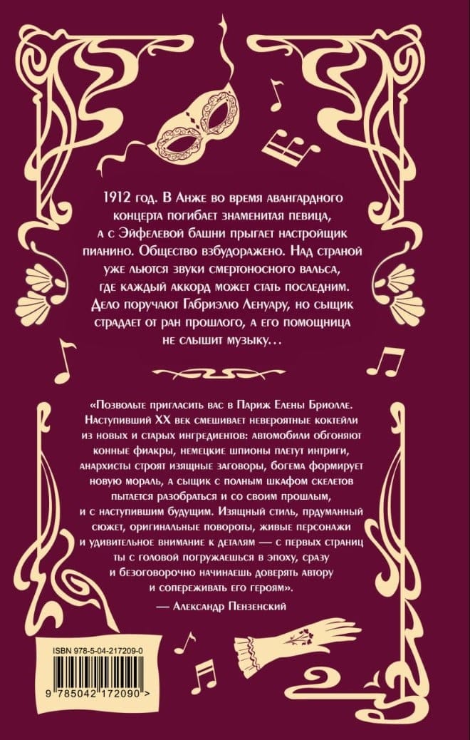 1912 год. В Анже во время авангардного концерта погибает знаменитая певица, а с Эйфелевой башни прыгает настройщик пианино. Общество взбудоражено. Над страной уже звучат звуки смертоносного вальса, где каждый аккорд может стать последним. Дело поручают Габриэлю Ленуару, но сыщик страдает от ран прошлого, а его помощница не слышит музыку…
