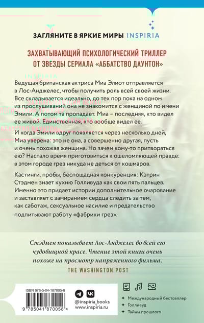 И когда Эмили вдруг появляется через несколько дней, Миа уверена: это не она, а совершенно другая, пусть и очень похожая женщина. Но зачем кому-то притворяться ею? Настало время приготовиться к ошеломляющей правде: в этом городе грез никуда не деться от кошмаров.