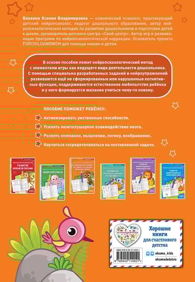 Обучающее пособие от издательства «Эксмо» разработано практикующим нейропсихологом и поможет ребёнку активизировать умственные способности, основываясь на нейропсихологическом методе обучения. Чем лучше взаимодействуют оба полушария, тем эффективнее дошкольник воспринимает информацию и адаптируется к новым видам деятельности.