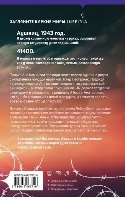 Пронзительный роман на основе реальных событий — о знаменитой акушерке Аушвица, которая татуировала детей номерами их матерей в надежде, что когда-нибудь они смогут воссоединиться.