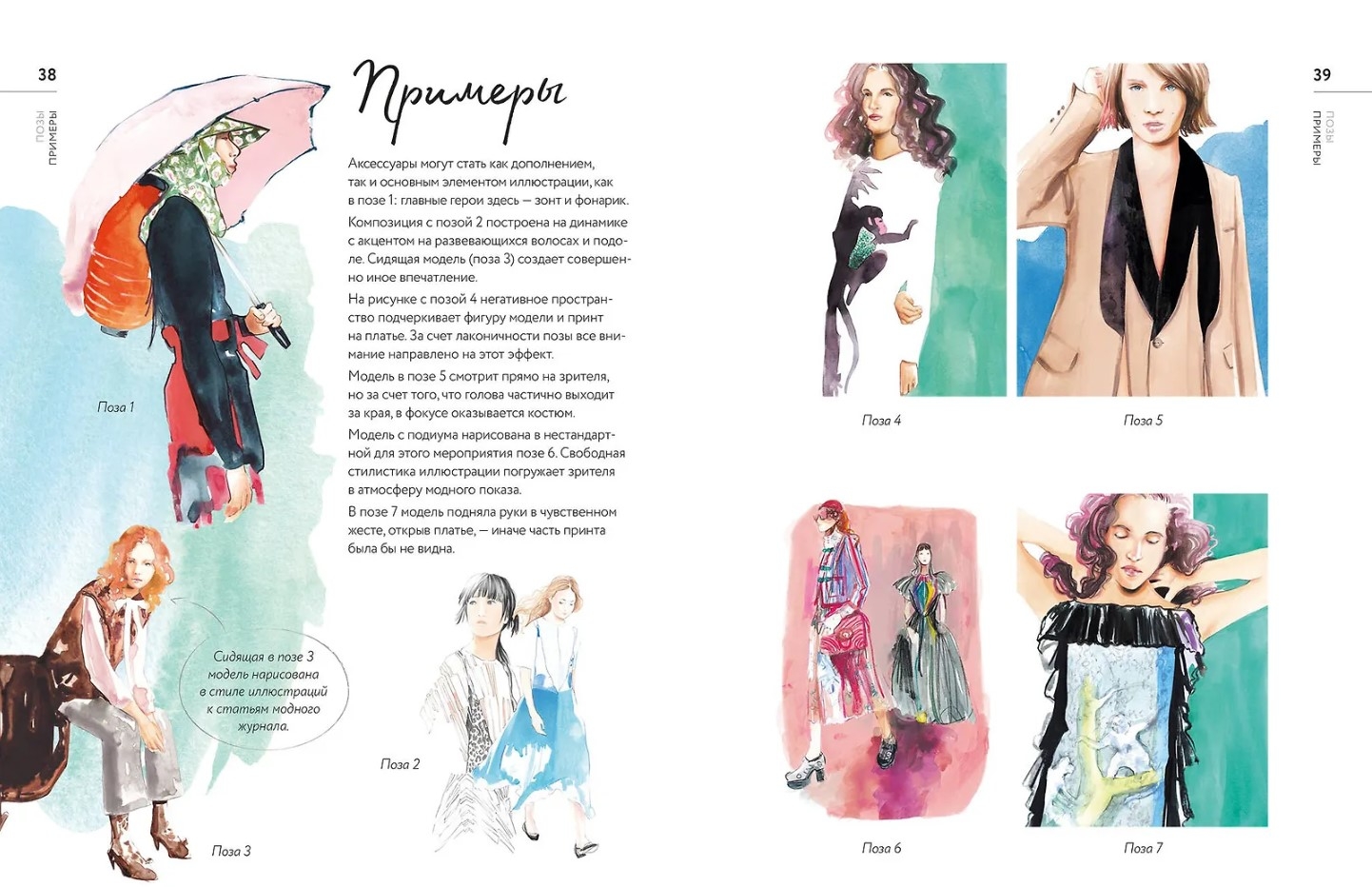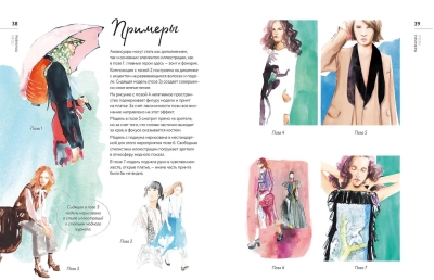 Есть здесь и пошаговые уроки в порядке от простого к сложному: рисование лиц, волос, поз, тканей, аксессуаров, создание объема и динамики, узоров и фактуры. А еще Франческо покажет вам, как работать с натуры, применять смешанные техники, использовать приемы цифровой обработки иллюстраций, чтобы постепенно развить собственный индивидуальный стиль.