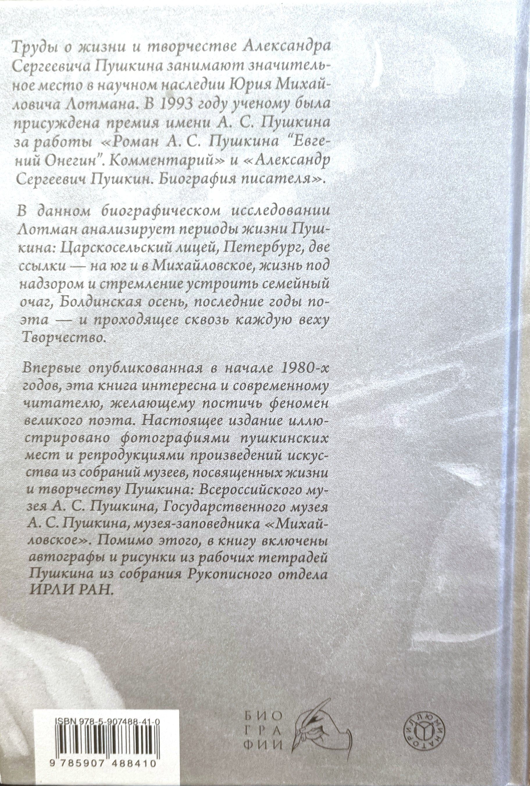 Впервые опубликованная в начале 1980-х годов, эта книга интересна и современному читателю, желающему постичь феномен великого поэта. Настоящее издание иллюстрировано фотографиями пушкинских мест и репродукциями произведений искусства из собраний музеев, посвященных жизни и творчеству Пушкина: Всероссийского музея А. С. Пушкина, Государственного музея А. С. Пушкина, музея-заповедника «Михайловское». Помимо этого, в книгу включены автографы и рисунки из рабочих тетрадей Пушкина из собрания Рукописного отдела ИРЛИ РАН.