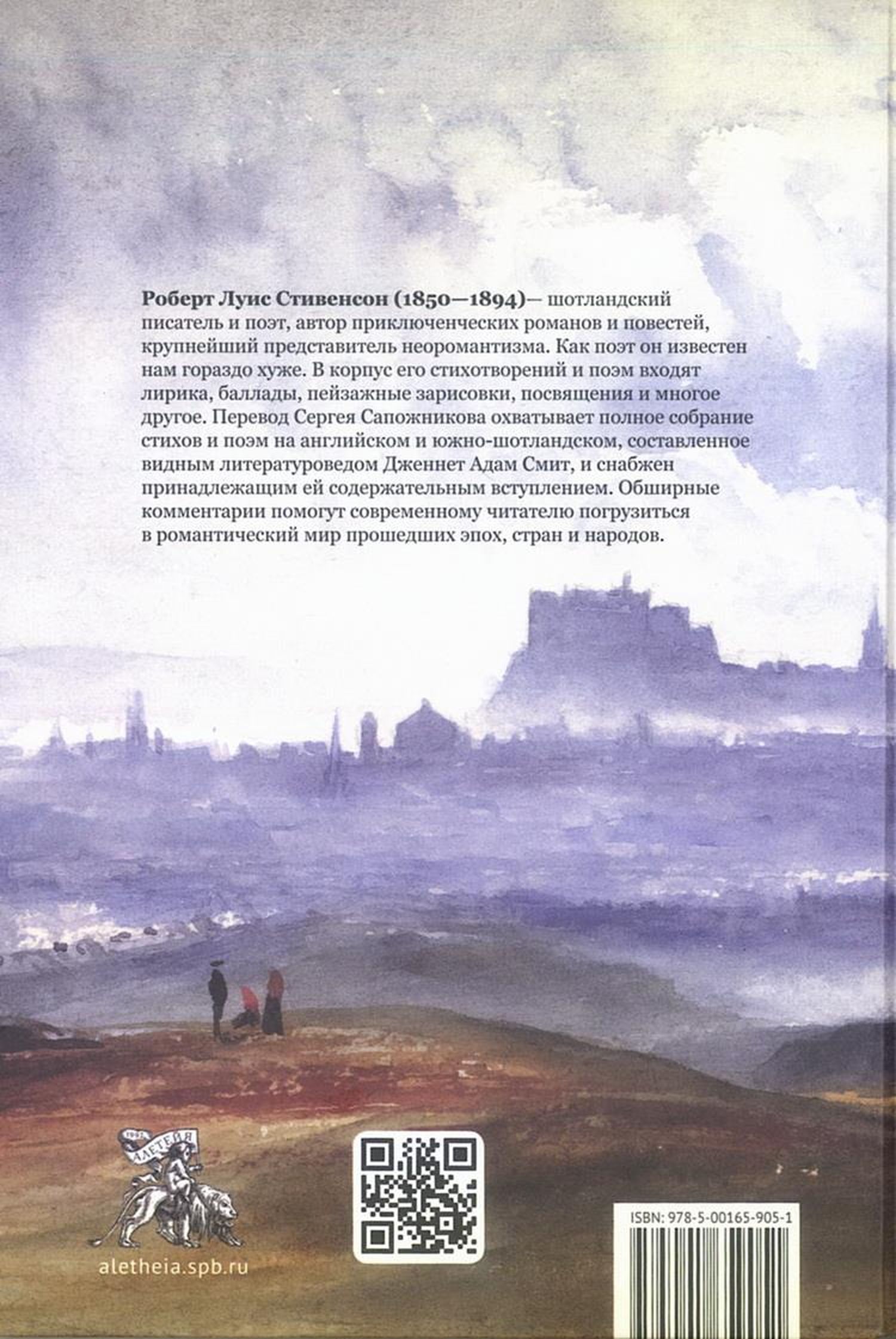 Роберт Луис Стивенсон – шотландский писатель и поэт, автор приключенческих романов и повестей, крупнейший представитель неоромантизма. Как поэт он известен нам гораздо хуже. В корпус его стихотворений и поэм входят лирика, баллады, пейзажные зарисовки, посвящения и многое другое. Перевод Сергея Сапожникова охватывает полное собрание стихов на английском и южно-шотландском, составленное видным литературоведом Дженет Адам Смит, и снабжен принадлежащим ей содержательным вступлением. Обширные комментарии помогут современному читателю погрузиться в романтический мир прошедших эпох, стран и народов.