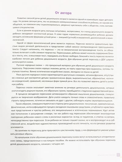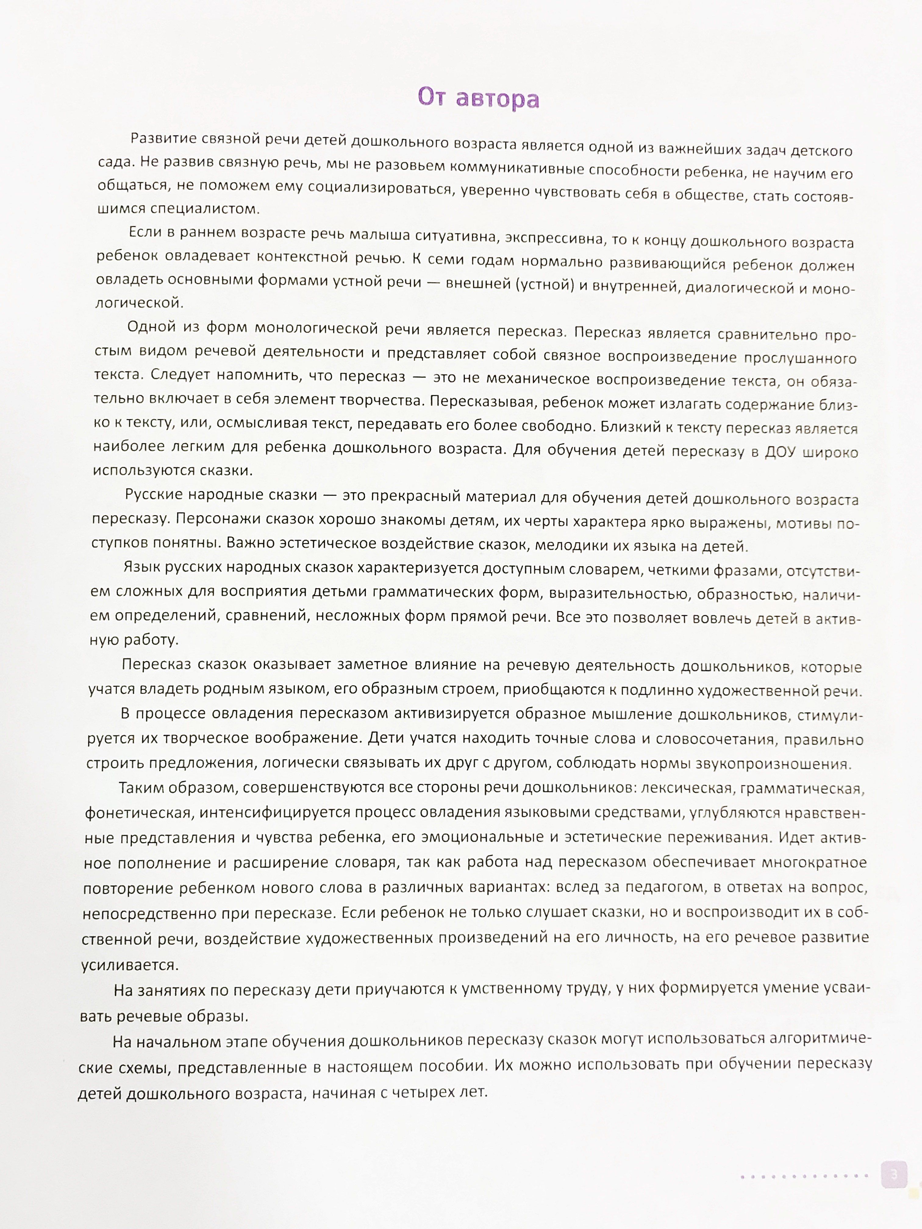 Развитие связной речи ребенка является одной из важнейших задач дошкольного детства. Русские народные сказки всегда использовались для развития речи малышей и обучения их пересказу, учили детей чувствовать глубину и красоту русского языка, позволяли услышать мелодику русской речи. В пособии представлены русские народные сказки, вопросы для беседы по ним, алгоритмические схемы для пересказа сказок, цветные иллюстрации.