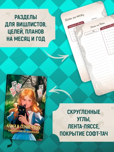 Потрясающий ежедневник по вселенной «Алисы в Зазеркалье» для твоих записей, творческих идей и планирования. Ваши мысли будут сопровождать цитаты из любимой книги! Для всех, кто любит красивые ежедневники и блокноты, которые качественно помогут в вашей работе и творчестве.
