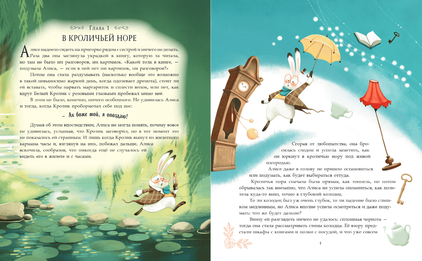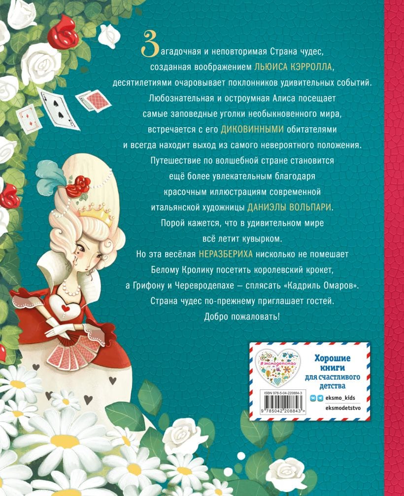 Сказочные уголки и удивительных обитателей чудесной страны изучила и нарисовала современная итальянская художница Даниэла Вольпари. Благодаря её мастерству перед нами, как живые, возникают Белый Кролик и Синяя Гусеница, задорно пляшут Грифон и Черевродепаха, а в воздухе то появляется, то исчезает загадочная улыбка Чеширского кота.