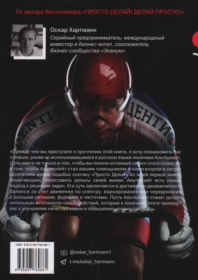 В своей новой книге «Альтернейт» Оскар Хартманн — известный предприниматель, филантроп, инвестор и спортсмен, автор бестселлера «ПростоДелай! ДелайПросто!» — рассказывает, как построить успешную жизнь и добиваться поставленных целей, оставаясь при этом счастливым человеком.