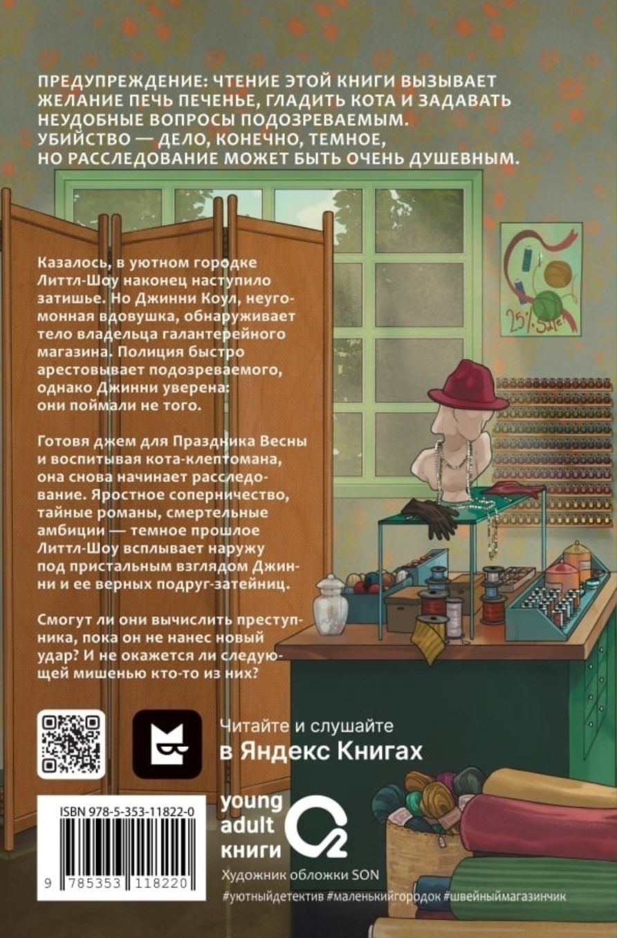 Казалось, в Литтл-Шоу наконец наступило затишье. Но Джинни Коул вновь обнаруживает труп! Убит владелец галантерейного магазина. Полиция быстро арестовывает подозреваемого, однако Джинни уверена: они поймали не того. Готовя джем для Праздника Весны и воспитывая кота-клептомана, неугомонная вдовушка снова начинает расследование.