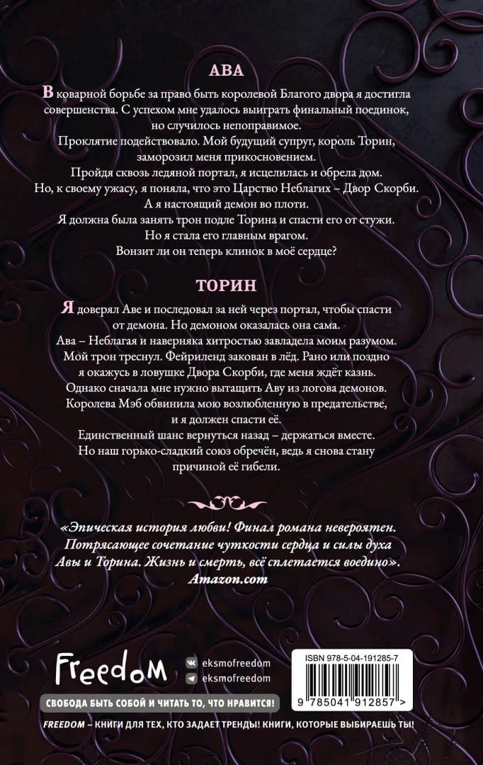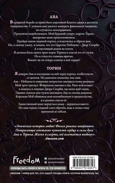 Король Торин жаждал обрести свою Королеву Благих и выбрал Аву. Девушка-фейри прошла финальный поединок, но случилась беда. Торин своим прикосновением заморозил тело девушки. Магия трона королевы вернула Аву домой, но это место оказалось не чем иным, как Царством Неблагих — Домом Скорби. Теперь Ава — Неблагая и настоящий враг Торина, а на голове у нее выросли медные рога. Торин не намерен оставлять свою любовь в логове демонов. Он должен был ее убить, но хочет спасти. Однако любовь их погубит, когда они вернутся в Фейриленд, ведь Торин проклят и убивает возлюбленных…