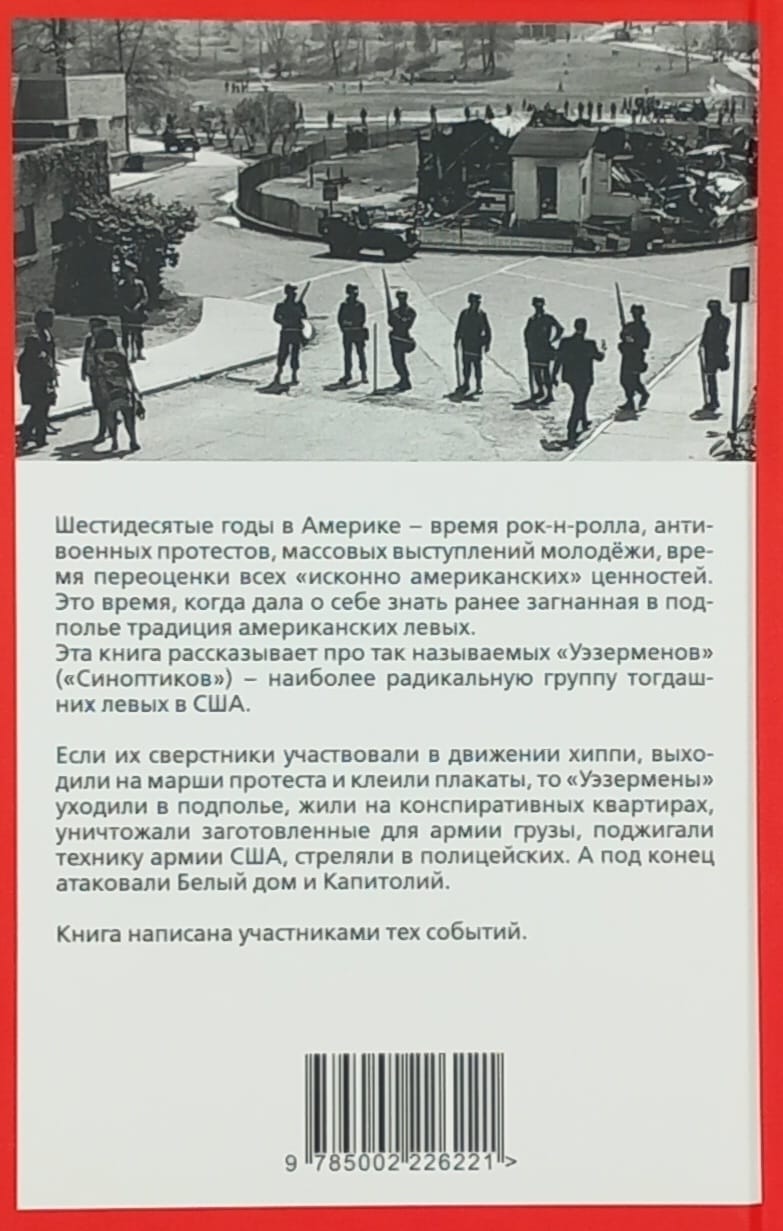 Шестидесятые годы в Америке – время рок-н-ролла, антивоенных протестов, массовых выступлений молодёжи, время переоценки всех «исконно американских» ценностей. Это время, когда дала о себе знать ранее загнанная в подполье традиция американских левых. Эта книга рассказывает про так называемых «Уэзерменов» («Синоптиков») – наиболее радикальную группу тогдашних левых в США. Если их сверстники участвовали в движении хиппи, выходили на марши протеста и клеили плакаты, то «Уэзермены» уходили в подполье, жили на конспиративных квартирах, уничтожали заготовленные для армии грузы, поджигали технику армии США, стреляли в полицейских. А под конец атаковали Белый дом и Капитолий. Книга написана участниками тех событий.