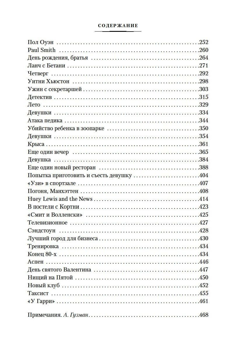 Патрик Бэйтмен — красивый, хорошо образованный, интеллигентный молодой человек. Днем он работает на Уолл-стрит, но это служит лишь довеском к его истинному призванию. То, чем он занимается вечерами и по ночам, не может присниться разнеженному обывателю и в самом страшном сне. Ему двадцать шесть лет, и он живет своей собственной Американской Мечтой.