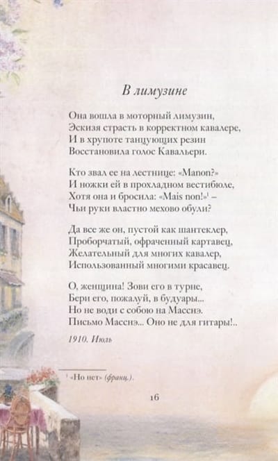 Стильно оформленное подарочное издание с трехсторонним золотым обрезом и объемным и золотым тиснением, аппликацией на обложке. Вы держите в руках томик особенной книжной серии, в которую войдут сочинения лучших русских поэтов прошлых веков. В этой серии собраны настоящие произведения искусства, способные достучаться до самой глубины Вашей души, передать отношение к окружающему миру, уникальный взгляд авторов на прекрасные, а иногда и трагичные события жизни... Эти творения находятся вне времени, их актуальность сложно переоценить, они смогут заинтересовать любого, кто готов будет открыть им свою душу. Великолепные цветные иллюстрации, сопровождающие творения истинных мастеров слова, создают тончайшие оттенки настроения, отражают многогранность образов, вложенных автором в сокровенные строки. Мы надеемся, чmo вместе с нами Вы погрузитесь в прекрасный мир поэзии и разделите наше восхищение драгоценными строками, принадлежащими перу лучших русских поэтов!