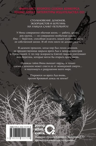 У Нины совершенно обычная жизнь – работа, друзья, рок-группа, – но совершенно необычная судьба. Она – берегиня, способная исцелять людей взамен на часть собственной жизни. И об этом никто не должен узнать. В далеком прошлом, когда мир был полон демонов, её предшественница закрыла врата Ада и заперла монстров в преисподней. И только другая берегиня сможет вызвать Кровавый дождь и вновь открыть врата. С тех пор экзорцисты Святой гвардии уничтожают всех берегинь, которые могли бы впустить демонов в наш мир. Однажды тайна Нины выходит наружу, и только сделка с демоном может спасти её от неминуемой смерти... и подтолкнуть к разрушению всего мира. Кто она теперь? Берегиня, служащая людям? Хозяйка могущественного демона? Разрушительница мира или его спасительница?