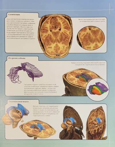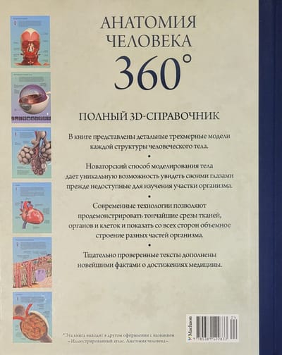 В книге представлены детальные трехмерные модели каждой структуры человеческого тела. Новаторский способ моделирования тела дает уникальную возможность увидеть своими глазами прежде недоступные для изучения участки организма. Современные технологии позволяют продемонстрировать тончайшие срезы тканей, органов и клеток и показать со всех сторон объемное строение разных частей организма. Тщательно проверенные тексты дополнены новейшими фактами о достижениях медицины. Составной корешок и стерео-варио обложка.