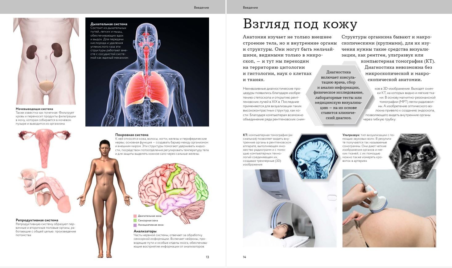 Авторы описывают краткую историю анатомии и современные методы диагностики (КТ, МРТ, ПЭТ). Дают научные рекомендации, полезные советы и неочевидные факты. Знаете ли вы, что цвет волос влияет на их густоту, где находится добавочный скелет и что мозг в утробе вырабатывает 250 000 нейронов в минуту?