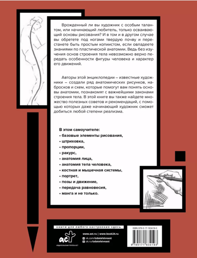 Авторы этой энциклопедии – известные художники, создали ряд анатомических рисунков, набросков и схем, которые помогут вам понять основы анатомии, познакомят с важнейшими законами строения тела. В этой книге вы также найдете множество полезных советов и рекомендаций, с помощью которых даже начинающий художник сможет добиться любой степени реализма.