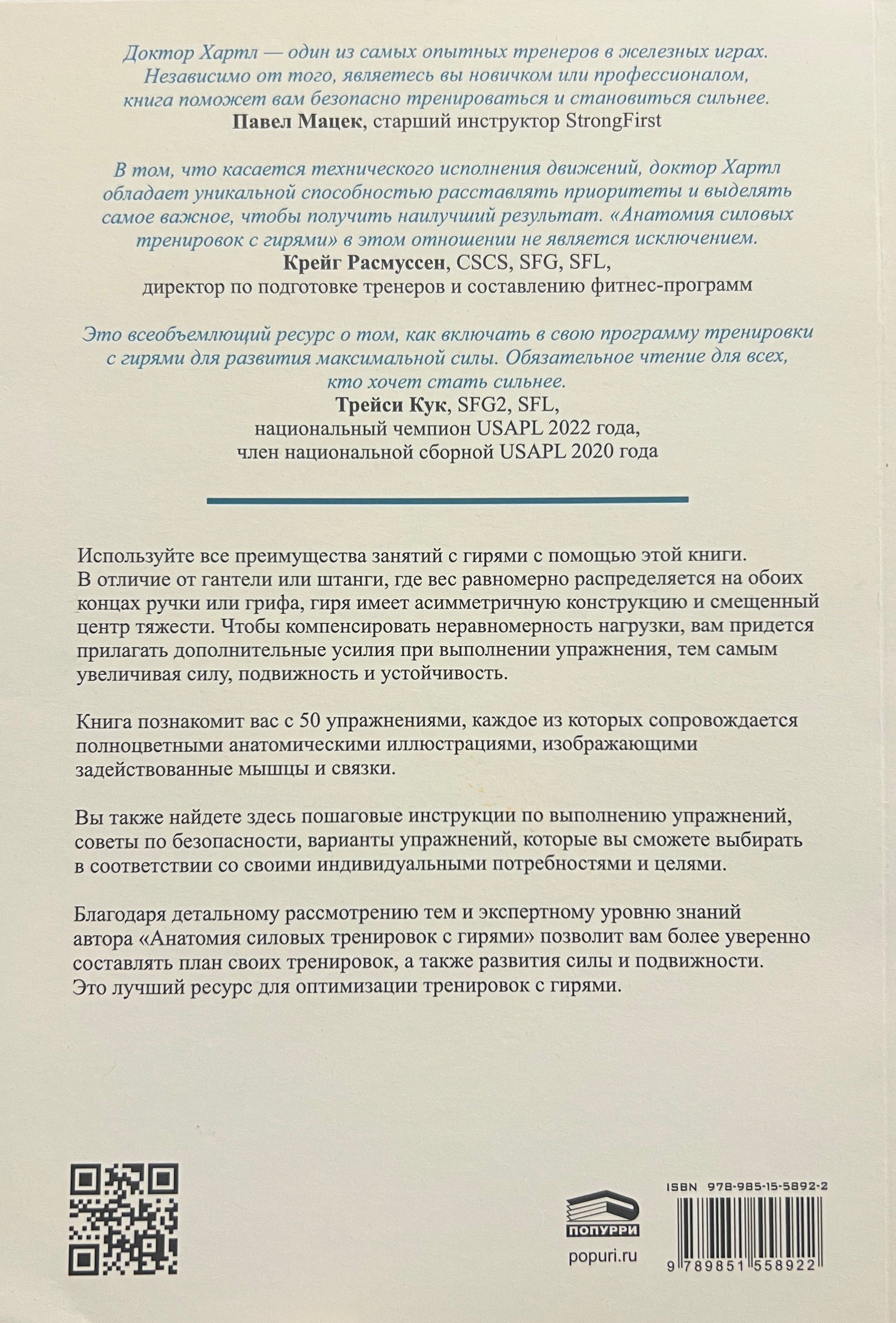 Благодаря детальному рассмотрению тем и экспертному уровню знаний автора книга позволит вам более уверенно составлять план своих тренировок, а также развития силы и подвижности. Это лучший ресурс для оптимизации тренировок с гирями.
