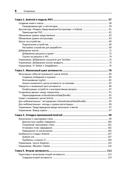 Познакомьтесь с возможностями программирования Android на языке Kotlin!  Множество примеров приложений с четкими объяснениями ключевых концепций и API позволят легко разобраться в самых трудных задачах. Эта книга посвящена прикладным методам разработки приложений на Kotlin, и подойдет для всех версий Android от 5.0 (Lollipop) до 8.1 (Oreo) и выше. Используйте Android Studio для создания приложений, чтобы проверять код на каждом этапе, интегрировать его с другими приложениями, работать с изображениями, воспроизводить аудио и делать многое другое. Каждая глава продумана (и протестирована) так, чтобы вы смогли получить максимум опыта и знания, необходимые для разработки под Android.