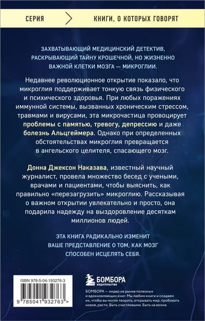 Донна Джексон Наказава, известный научный журналист, провела множество бесед с учеными, врачами и пациентами, пытаясь понять, как правильно «перезагрузить» микроглию. Рассказывая о важном открытии увлекательно и понятно, она дарит надежду на выздоровление десяткам миллионов людей, страдающим от тяжелых психических и физических заболеваний.