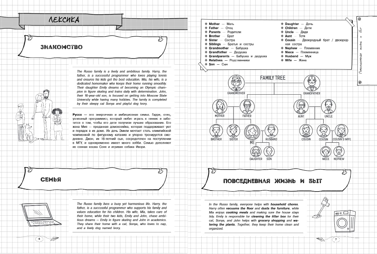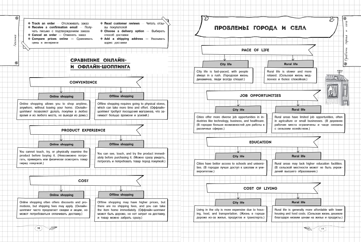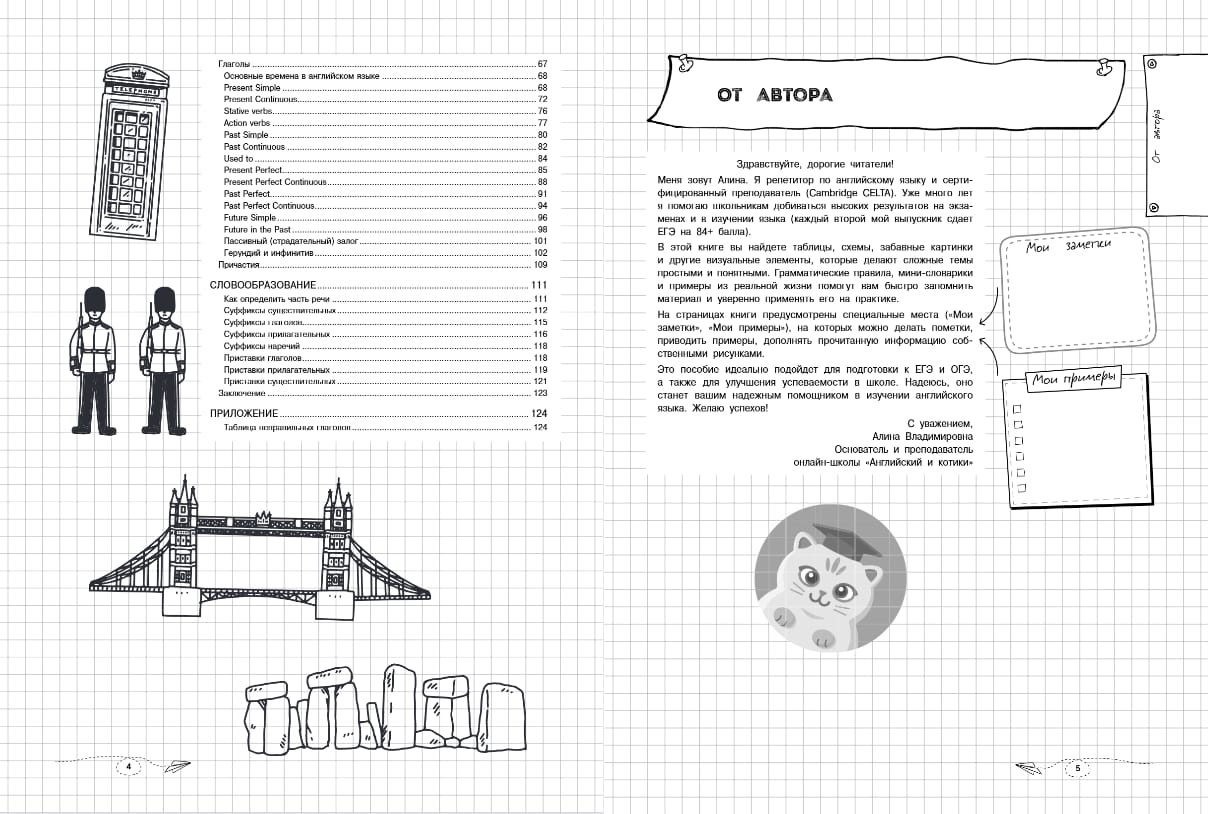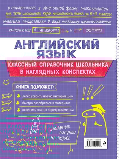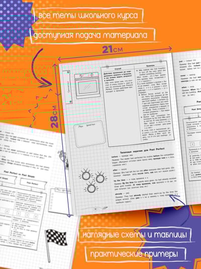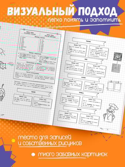 Благодаря наглядной подаче теории с примерами, схемами, а также забавными рисунками, текст становится доступным и интересным. Визуальный подход обеспечивает легкость восприятия и запоминания информации, ведь она оформлена в виде конспектов, словно ученик писал их сам. Всевозможные иллюстрации и места для собственных примеров и примечаний помогут сделать процесс обучения максимально простым и приятным! А при желании можно взять маркеры и сделать свой конспект еще более уникальным и персонализированным!
