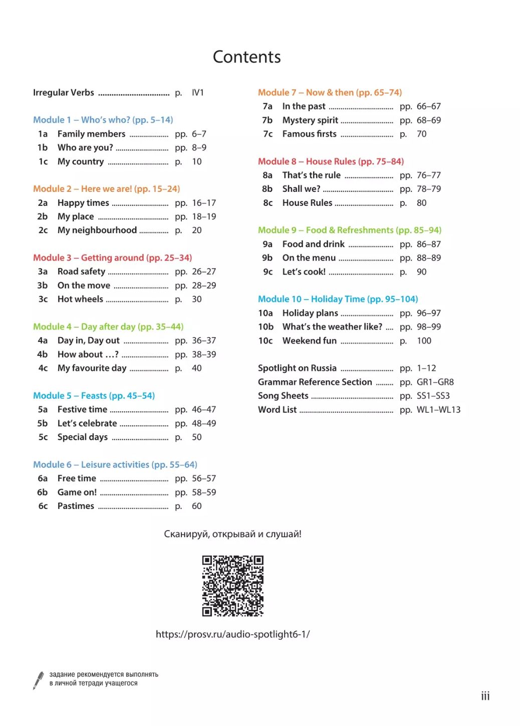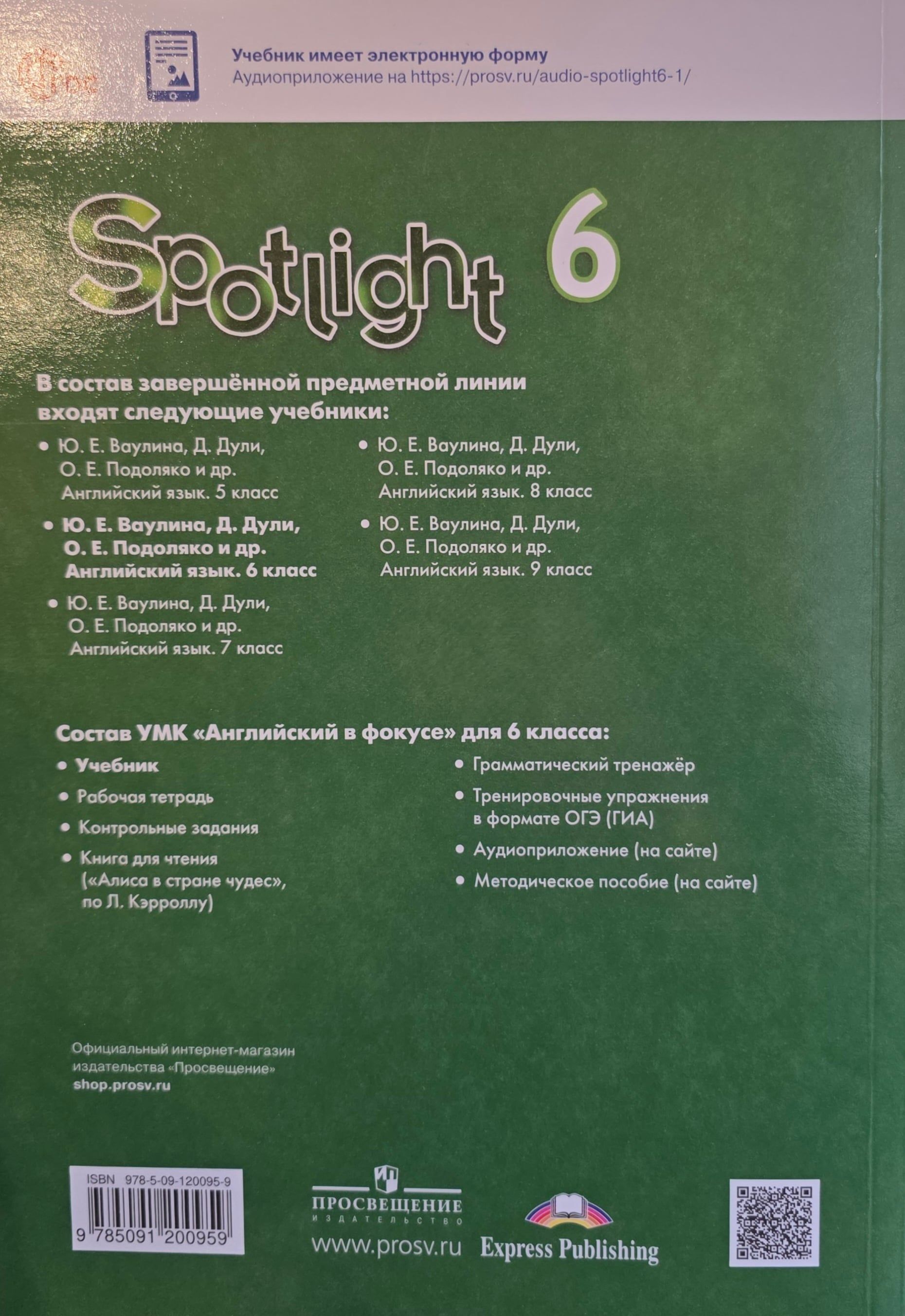 Учебник соответствует ФГОС 2021 г. Учебник является центральным элементом учебно-методического комплекта «Английский в фокусе» и предназначен для учащихся 6 классов общеобразовательных организаций. Отличительной особенностью УМК является модульное построение учебника, наличие аутентичного материала о России, заданий, соответствующих требованиям международных экзаменов, готовящих постепенно к Государственной итоговой аттестации учащихся в 9 классе.