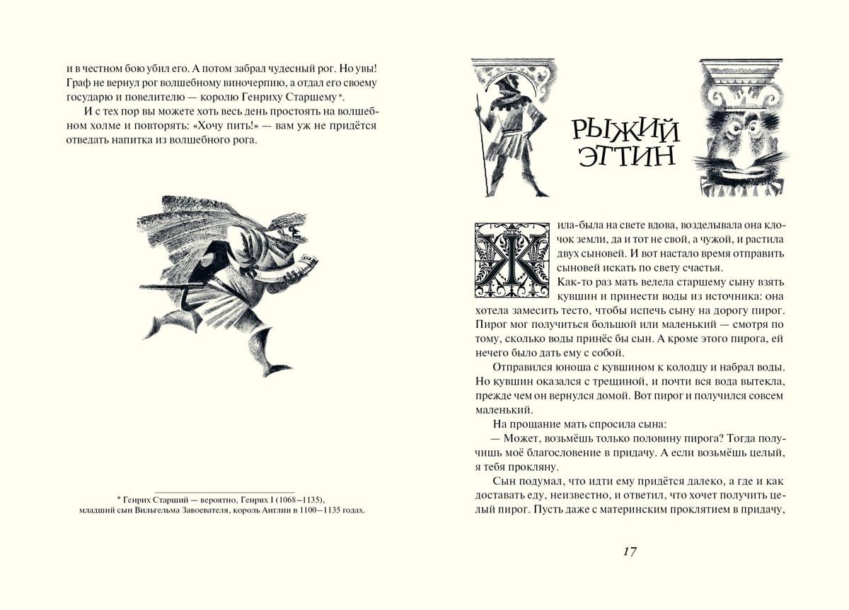 Говорят, что в каждом приличном английском доме живёт домовой - брауни, а замками владеют великаны. Волшебные существа (эльфы и злые волшебницы, драконы и кошачьи короли) и вполне реальные люди (короли, аббаты, лорд-мэры Лондона) сосуществуют не только в текстах сказок, но и в рисунках Ники Гольц. Истории и легенды Англии в интерпретации Гольц многослойны, невероятно динамичны и даже драматичны.