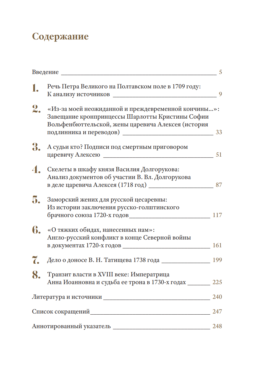 В сборник вошли наиболее яркие и интересные работы известного историка Евгения Анисимова, объединенные темой русского XVIII века. Все они посвящены острым моментам политической истории России и представляют собой источниковедческие эссе, где подлинный документ подробно комментируется и вводится в культурный контекст. Сам автор пишет об этом так: «Мы, историки, не можем существовать без источников — этих бесценных свидетельств прошлого, ибо закон науки жесток — нет источника (чем бы он ни являлся — книгой, рукописью, любым артефактом) — нет истории, нет прошлого».