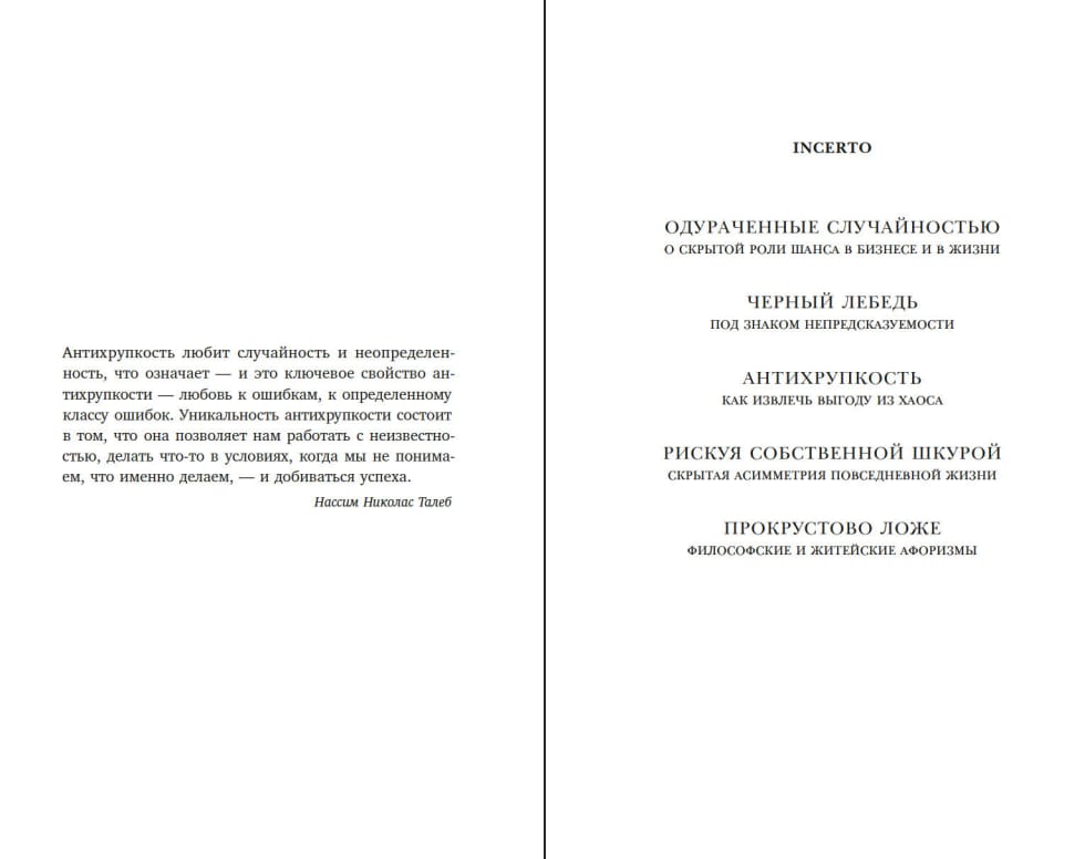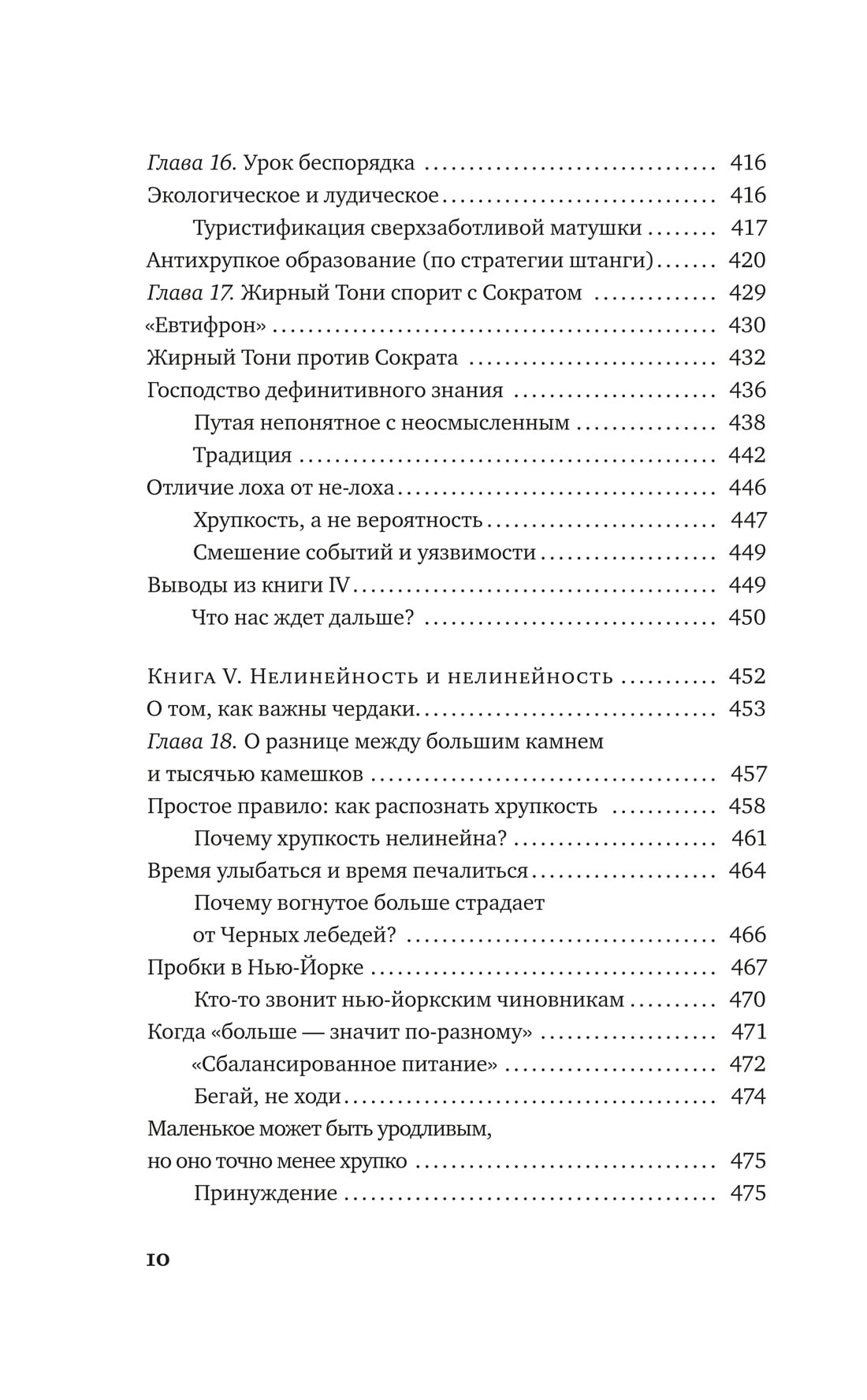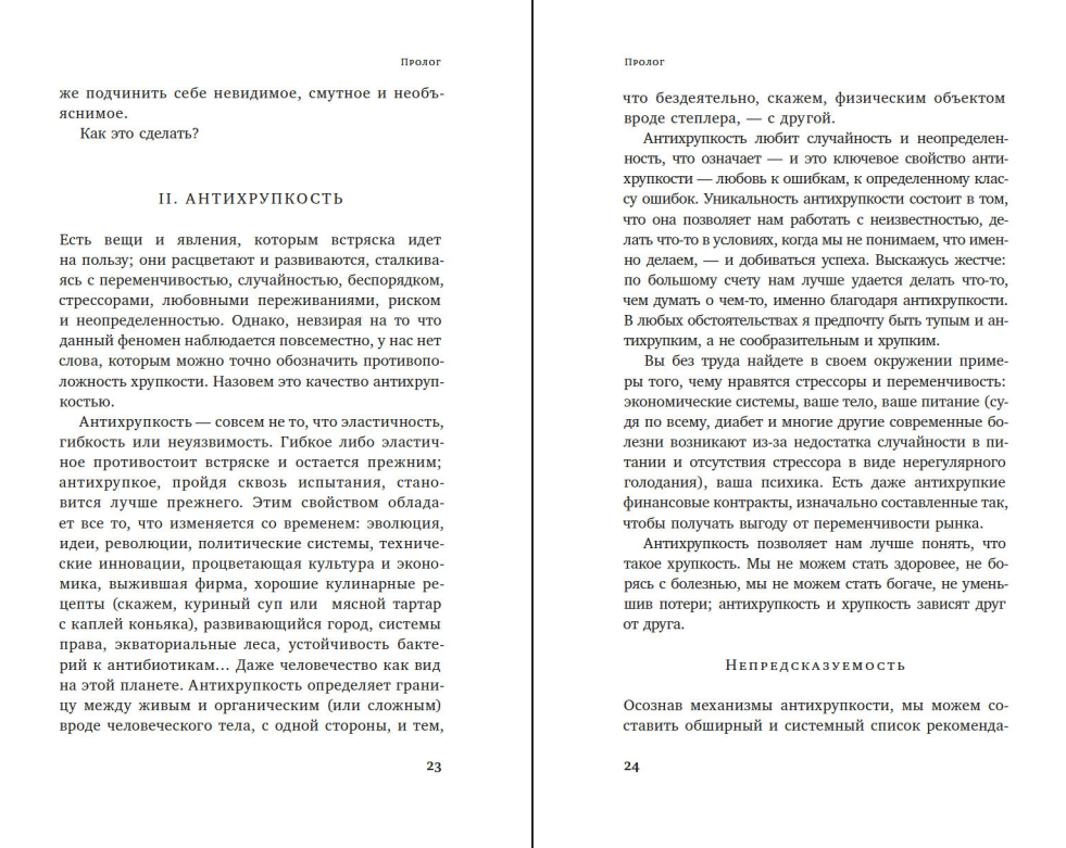 «Антихрупкость» — книга уникальная: она рассказывает о ключевом свойстве людей, систем и не только, свойстве, у которого до сих пор не было названия. В мире, где царит неопределенность, нельзя желать большего, чем быть антихрупким, то есть уметь при столкновении с хаосом жизни не просто оставаться невредимым, но и становиться лучше прежнего, эволюционировать, развиваться.