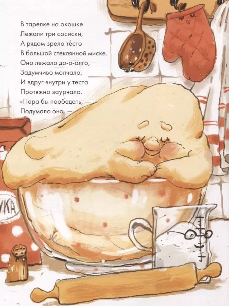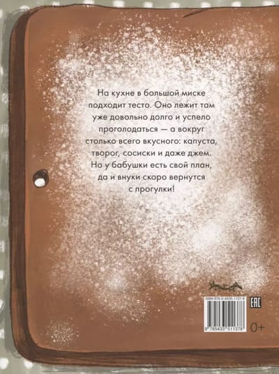 На кухне в большой миске походит тесто. Оно лежит там уже довольно долго и успело проголодаться - а вокруг столько всего вкусного: капуста, творог, сосиски даже джем. Но у бабушки есть свой план, да и внуки скоро вернутся с прогулки.