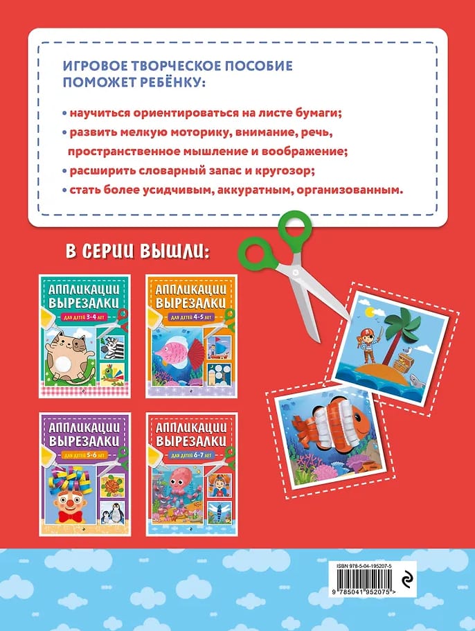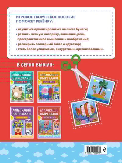 Книга серии «Аппликации-вырезалки для дошколят» издательства «Эксмо» будет лучшим подарком малышу и настоящей находкой для неравнодушных родителей, которые хотят развить ребёнка и занять его полезным и интересным делом.