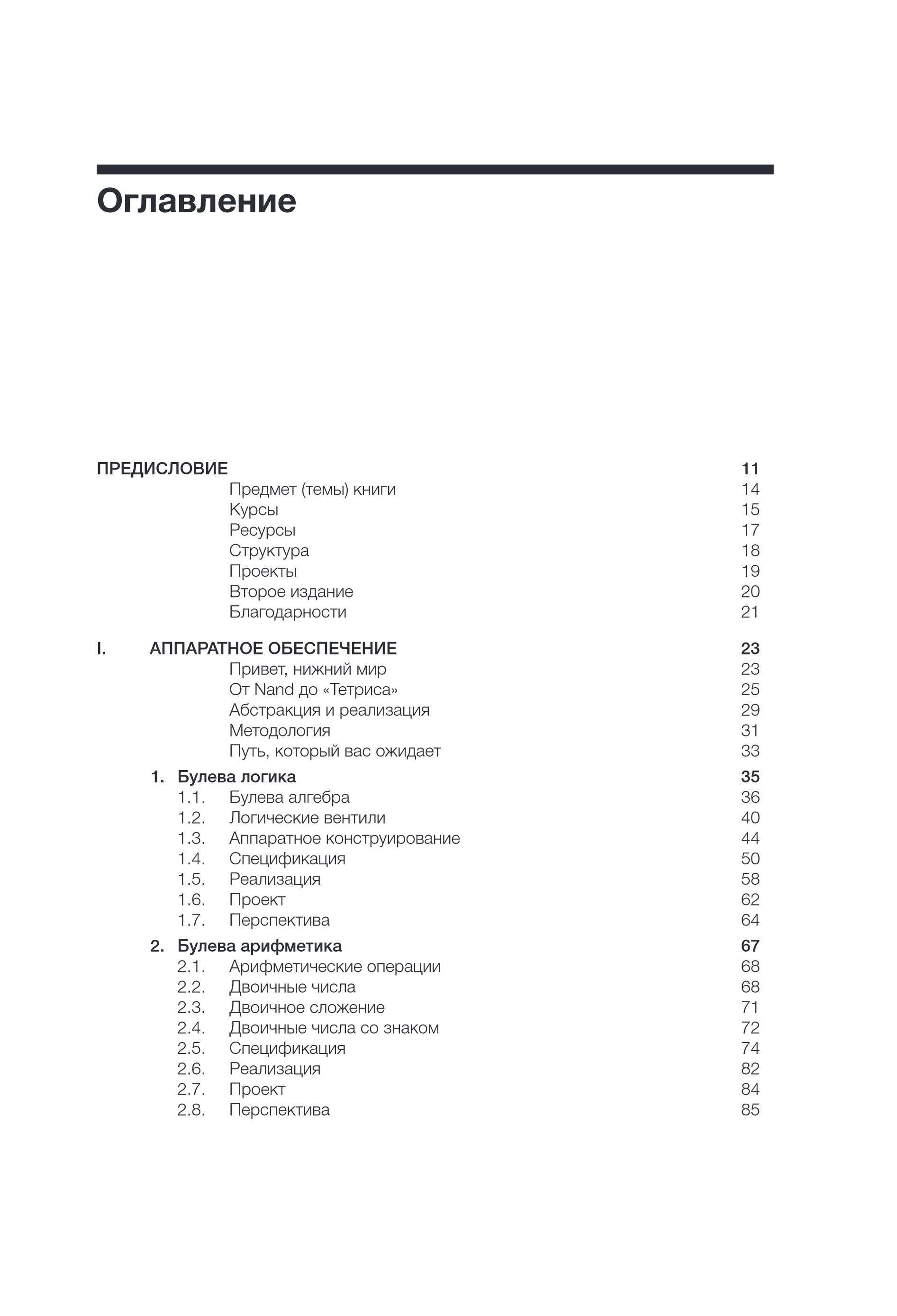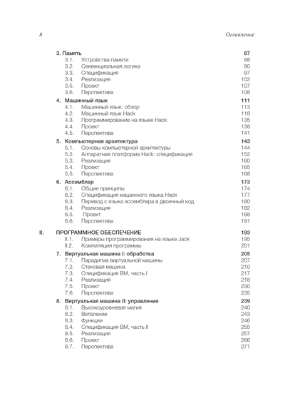 Так считают авторы этой книги и потому предлагают практический подход к изучению компьютерных систем. Внутри вас ждет не только исчерпывающее теоретическое описание работы современного компьютера, но и алгоритм конкретных шагов, необходимых для его конструирования. Благодаря книге вы научитесь разбираться в следующих темах: • Аппаратное обеспечение; • Компьютерная архитектура; • Языки низкого и высокого уровня; • Виртуальные машины; • Компиляторы; • Программирование; • Операционные системы; • Структуры данных и алгоритмы; • Программная инженерия. Уникальная особенность книги заключается в том, что все эти темы тесно связаны и четко ориентированы на главную цель: создание современной компьютерной системы с нуля. Учебник полностью самодостаточен: все необходимые знания для построения описанных в ней аппаратных и программных систем есть внутри. Часть I «Аппаратное обеспечение» не требует предварительных знаний, что делает проекты 1—6 доступными для любого студента и самоучки. Часть II «Программное обеспечение» и проекты 7—12 требуют предварительного изучения программирования (на любом языке высокого уровня). В отличие от других учебников, которые охватывают только один аспект темы, «Архитектура компьютерных систем» дает целостное и исчерпывающее знание прикладной информатики, необходимое для создания собственных проектов.