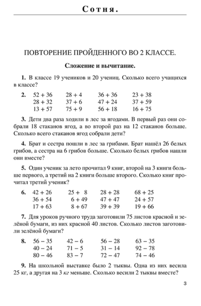 Арифметика для 3-го класса начальной школы